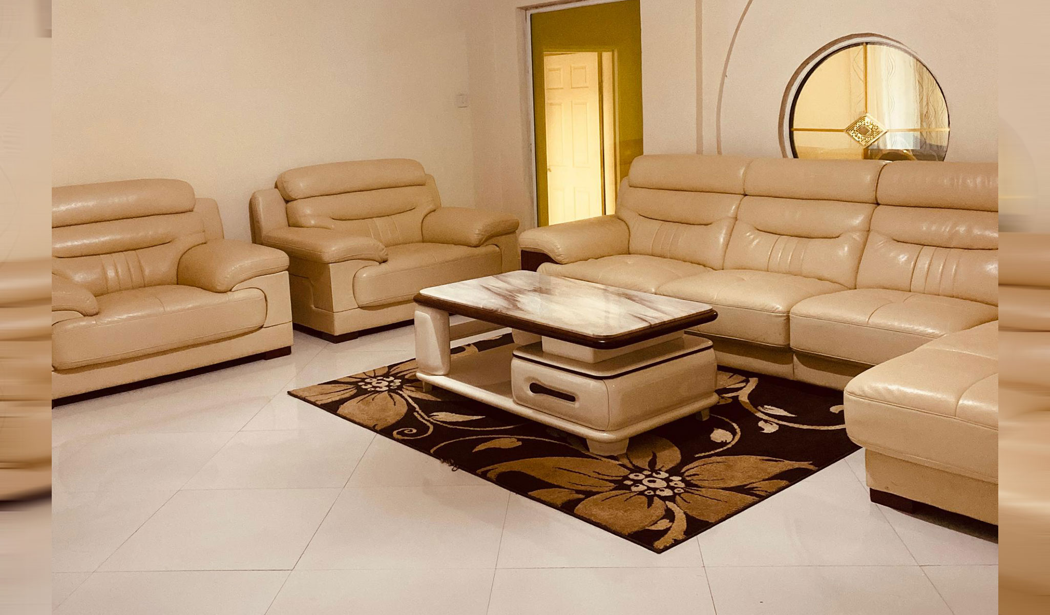 Les logements familiaux sont jumelle dans le même complexe à 4050 m² et dans une zone sûre et paisible.5 chambres dans chaque villa et chaque pièce a sa propre suite.Une grande cuisine et un dépôt de stockage.La salle à manger contient une grande table plus 6 chaises. Un garage pour un véhicule plus 6 véhicules à l'intérieur du parking composé. La chambre principale a de l'espace pour un bureau pour ceux qui voyagent pour le travail. Nous avons une machine à laver, un congélateur, le cuiseur électrique et le reprenage sont inclusifs.Un espace pour 200 personnes pour les activités de fête et de loisirs sur l'herbe dans l'enceinte.Nos appartements sont équipés de panneaux solaires offrant à nos installations une source d'électricité efficace et fiable pour votre confort.